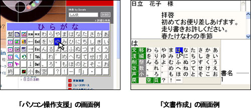 スクリーン上に表示された文字盤により、マウスを使って文字入力することができるため、キーボード操作が苦手な方も、簡単に文字入力を行えます。 |