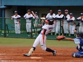 JDリーグ第3節3日目の相手は、昨年東地区3位のホンダ。この一戦に勝利し、次節の地元保土ヶ谷に向け勢いを付けておきたいところ。日立の先発田内は初回表から内野安打と四球で一死一、二塁のピンチを招くも、その後は内野ゴロ、空振り三振に切って取り無失点で切り抜ける。2回表にも四球と内野安打のランナーを出すも、飛び出したランナーを女鹿田が封殺する等、好守にも助けられ無失点で抑え、3回表は三者凡退に抑え得点を与えぬピッチングを続ける。