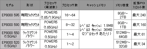 また、今回同時に、「EP8000 550」「EP8000 520」に、1.5GHzのプロセッサPOWER5を搭載したモデルも新たに製品化し、高信頼性でありながら、低価格なエントリーモデルの品揃えを充実します。