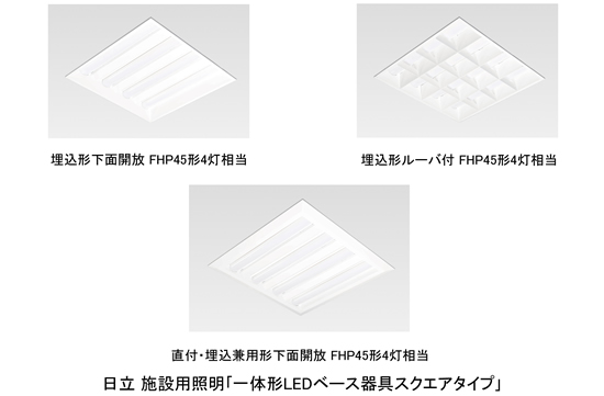 日立アプライアンス株式会社(取締役社長:二宮 隆典)は、LED光源ユニットと器具が一体となった施設用照明「一体形LEDベース器具」のラインアップ拡充として、「一体形LEDベース器具スクエアタイプ」埋込形60機種を8月1日に、直付・埋込兼用形40機種を9月2日に発売します。