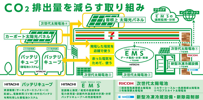 株式会社セブン‐イレブン・ジャパン(社長:永松 文彦)は、株式会社日立製作所(社長:小島啓二)、株式会社リコー(社長:大山 晃)、サンデン・リテールシステム株式会社(社長:森 益哉)と連携し、各社の持つ先進技術を集め、更なる省エネ、創エネと蓄電の取り組みの進化を目指した環境負荷低減店舗の実証実験を、「セブン‐イレブン三郷彦成2丁目店」にて本格スタートいたしました。