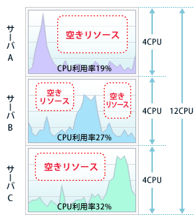 業務ごとにサーバを設けているが、CPUの利用率が低くもったいない。空いているリソースを有効に使いたい!