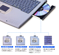 取り外し・交換が可能なファイルベイ構造を採用。CD-ROM ドライブをはじめ、オプションでDVD-ROMドライブ、CD-R/RW ドライブ、ウェイトセーバーと目的や用途に応じて収納装置が選べます。