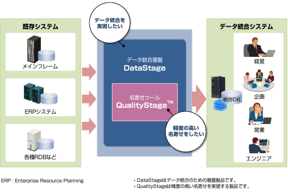 ビジネス戦略を勝利へと導くために不可欠なこと。それは、企業に散在する膨大かつ多種多様な情報資産を、企業活動に活かせる情報として的確に提供するデータ統合にあります。 DataStageは、価値ある戦略的情報のためのデータ統合基盤です。 GUIによるビジュアル開発により、開発期間の短縮、開発・維持コストの削減を実現します。
