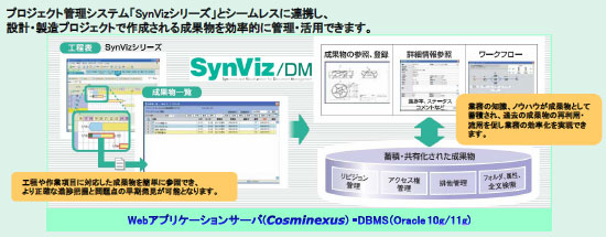 プロジェクト管理システム「SynVizシリーズ」とシームレスに連携し、設計・製造プロジェクトで作成される成果物を効率的に管理・活用できます。