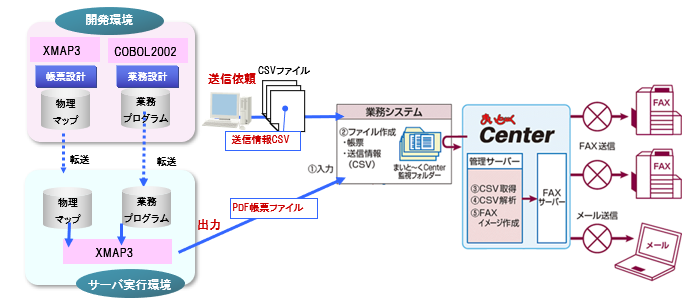FAX送信のための特別なフォルダを設ける必要がなく、FAXの送信情報をCSVファイルで指示できるので、PDF帳票の管理と自動配信を同時に行うことができます。