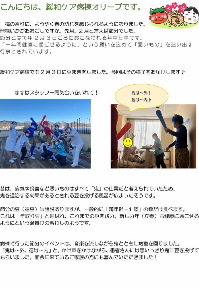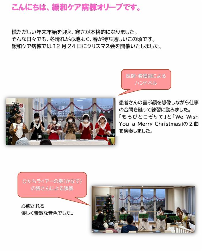 体調の変化に悩まされる患者さんにとって、季節を感じるイベントが少し でも癒しの時間になっていれば嬉しいです。