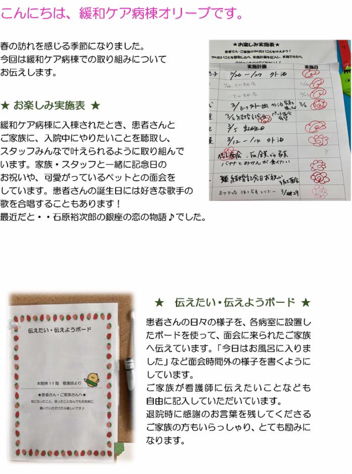 緩和ケアに関する取り組みや日々の様子を、スタッフの声とともにお届けしてまいります。