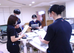 また、毎月病棟会議を開催し、定期的に勉強会も行われています。日々進歩する医療現場に対応するための知識や技術を学ぶことができ、業務の中で抱く疑問や不安をスタッフで共有し解決する機会にもなるため、安心・安全な医療の提供につながっています。