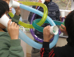 糸電話の糸の部分を風船に変(か)えた、風船電話を作ってみましょう。どうして風船に変(か)えると、相手の声がよく聞こえるようになるのでしょうか。風船電話がよく聞こえるのは、糸電話とは音の伝(つた)わり方が違(ちが)うからです。風船電話で楽しく遊んで、音の伝(つた)わり方を学習をしましょう。