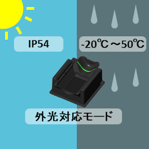防塵・防水IP等級の向上、適用温度の拡大、屋外などの外光環境下でも認証しやすい外光対応モード*など、屋外対応を強化