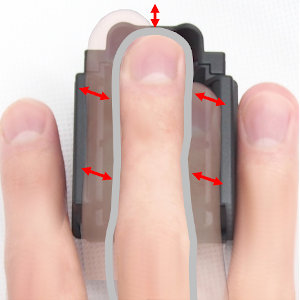 指の左右から光を照射して指静脈を撮影するコンパクトな組込みモジュールです。