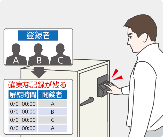 複数人で頻繁に利用する場合、いつ誰が開けたかが確実に管理できます。また、長期間使用しない場合も鍵の紛失や暗証番号忘れなどが無く安心です。