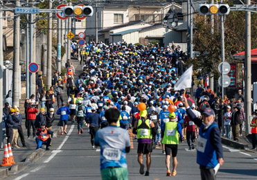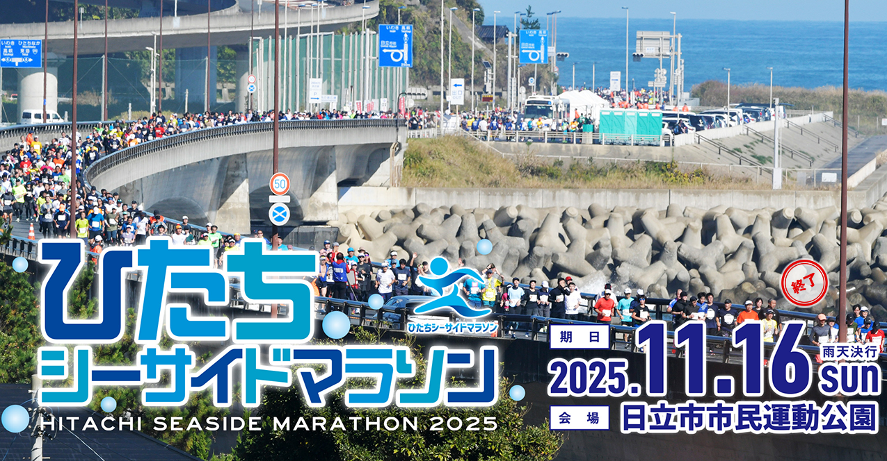 当日は朝から秋晴れに恵まれ、11月とは思えないほどの暖かさとなりました。国道6号日立バイパス(日立シーサイドロード)や河原子海岸道路など、潮風を感じる海沿いのコースをランナーが走り抜けました。
