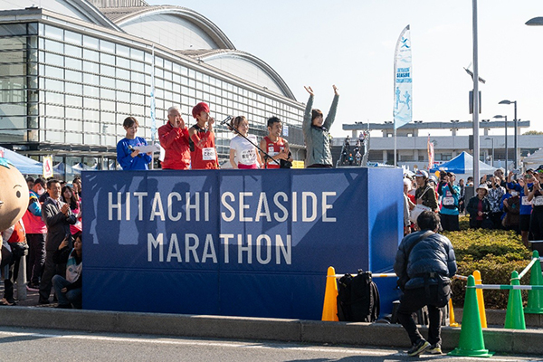 男性の部では、昨年の優勝者である岡山春紀選手(コモディイイダ陸上部)と地元日立市出身の鈴木聖人選手(旭化成陸上部)によるハイレベルなレースが展開され、岡山選手が見事に連覇を果たしました。また、オープニングセレモニーでは、町田日立事業所長が登壇し、ランナーの皆さまへ激励のメッセージを贈りました。ひたちシーサイドマラソンは、原則毎年11月の第3日曜日に開催予定です。日立製作所は、創業の地での本イベントを来年以降も応援し、一緒に盛り上げていきたいと考えています。来年も茨城県内外からの多数のご参加をお待ちしています。