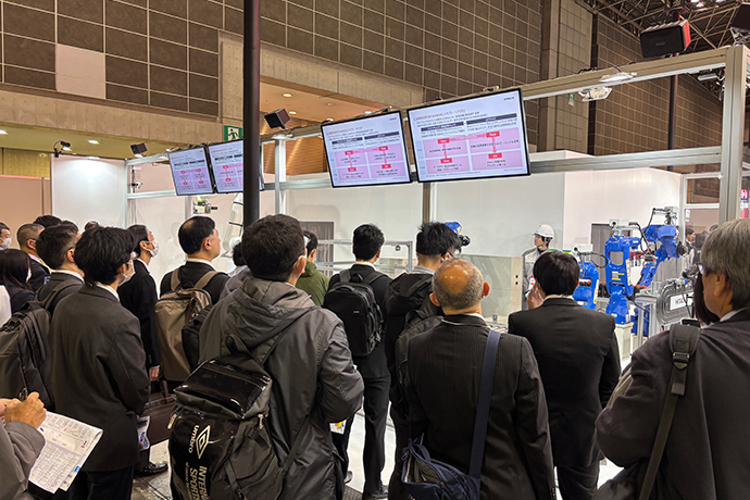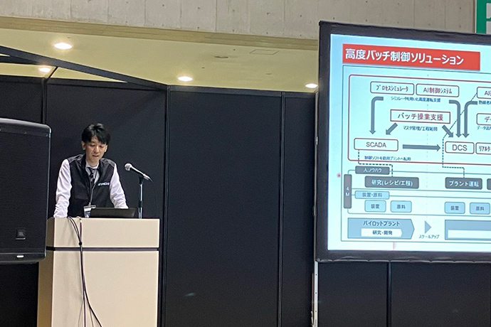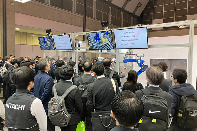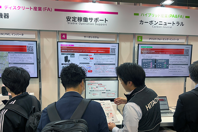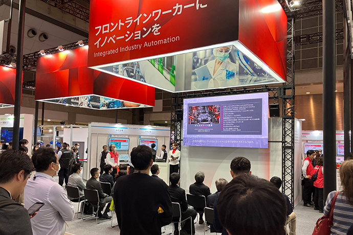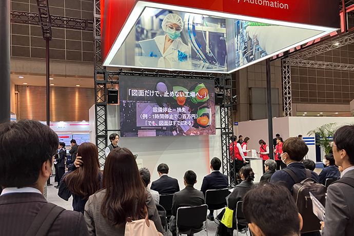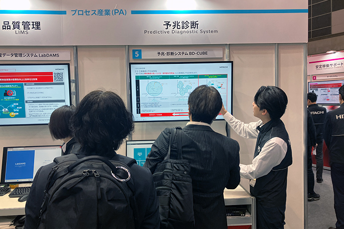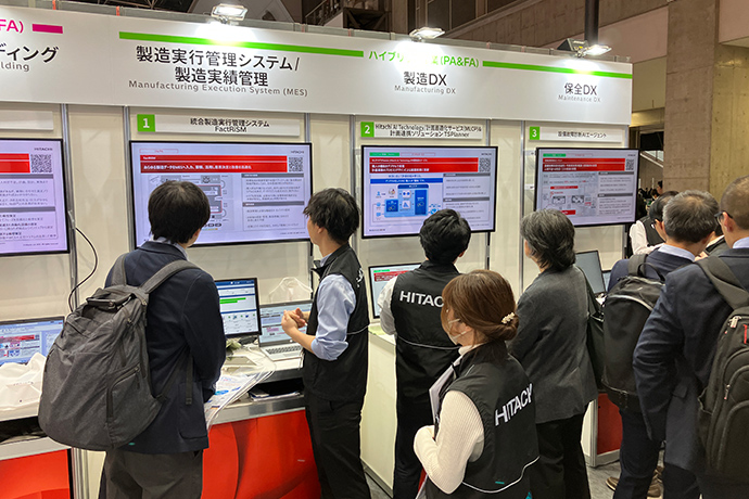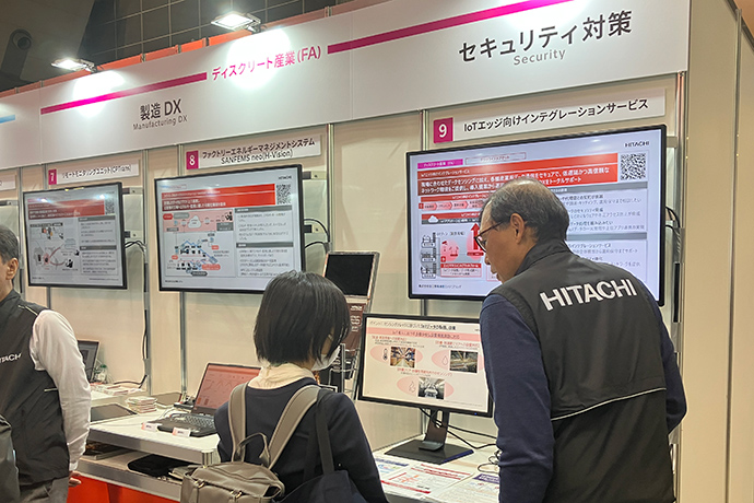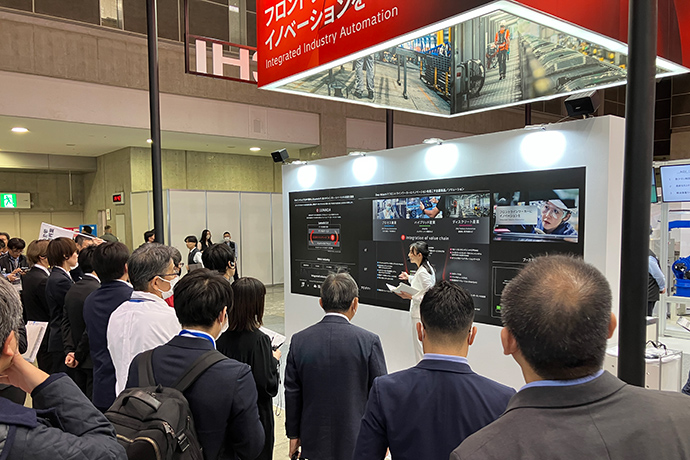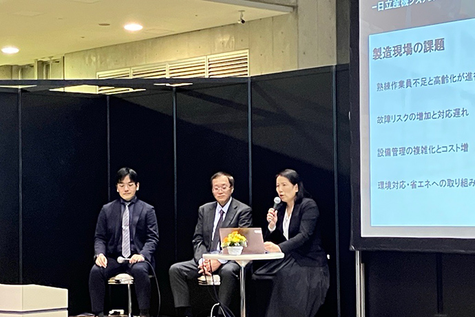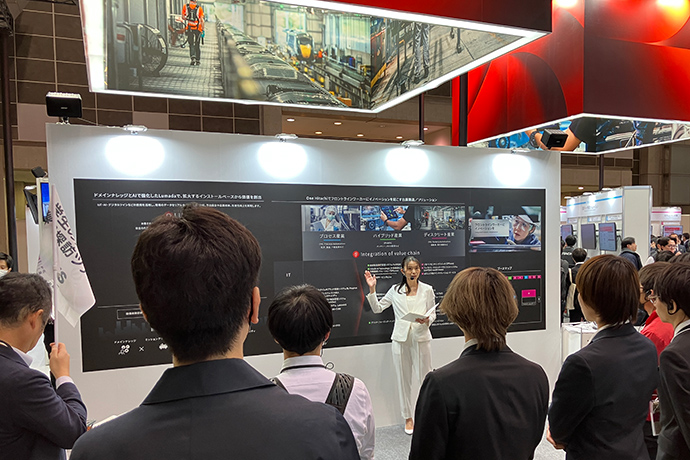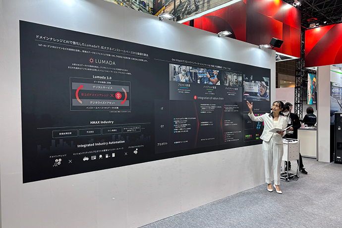 豊富なミッションクリティカルプロダクトのデジタライズドアセットに、ドメインナレッジとAIを掛け合わせたデジタルサービスの展開により、フロントラインワーカーの負担軽減をはじめ、さまざまな生産現場の課題解決に貢献する日立の取り組みを紹介しました。先進ソリューションや、製品の詳しいプレゼンテーションも実施しました。