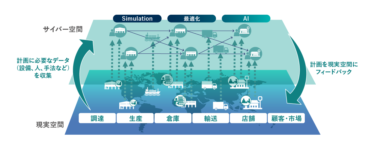 サイバー空間でシミュレーションや最適化、AIなどによって計画を高度化することが重要です。