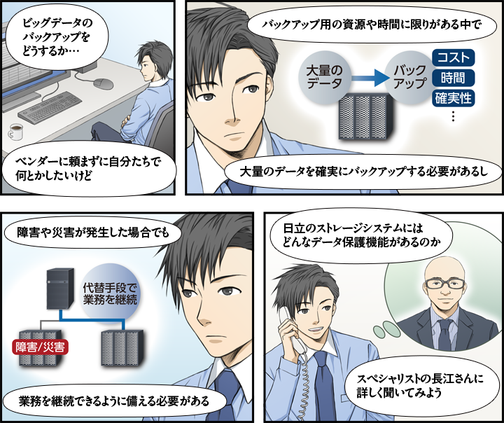 前回、日立のストレージシステムへのリプレースを終えた国府津さん。業務をほとんど止めることなくデータを移行できたことに満足しているようですが・・・次の課題として、データの損失や大規模な災害に備えた「データの保護」について考えているようです。