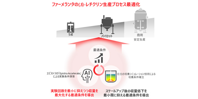 エピストラと日立、AIを活用しファーメランタの医薬原料中間体「(S)-レチクリン」の生産において、世界最大級の収量とラボ実験回数の最大73%減を達成