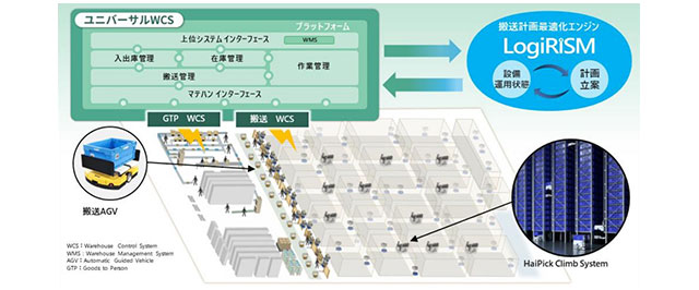 日立の「ユニバーサル WCS」とHMAX Industryソリューション「LogiRiSM」が、複数マテハン設備を統合制御。拠点全体の生産性約40%向上をめざす
