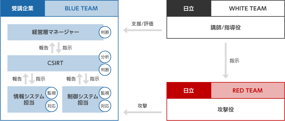 受講企業だけでなく日立も参加した組織演習で、組織全体での事業被害を最小化する訓練ができます。