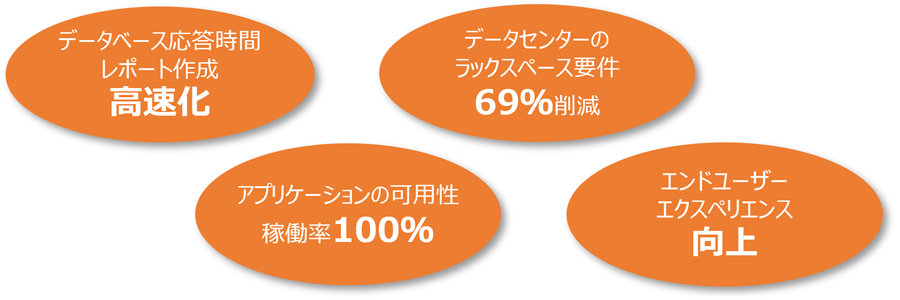 お客さまは、日立ヴァンタラのVSPを使用して、アプリケーションの可用性を向上させ、100%の稼働時間を達成しました。またデータセンターのラックスペース要件を26台からわずか8台に減らすことができ、エネルギー消費量とコストを削減することができました。