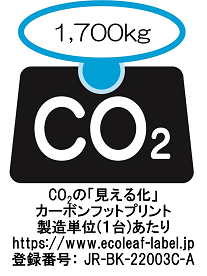 | 製造単位(1台)あたりのCO2排出量 | 1,700kg-CO2eq | |