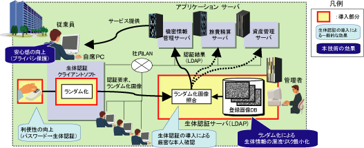 本技術を企業情報システムに適用することにより、生体情報の秘匿性が高まり、生体情報の漏えいリスクを最小化することができます。また、これによりプライバシー保護もより強固なものになります。 また今後、本技術を活用することにより、様々なサービス提供が実現できると考えています。